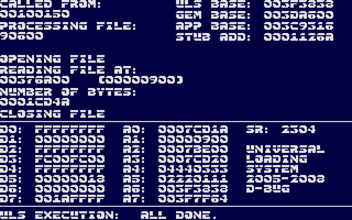 U.L.S. (Universal Loading System) is a means by which Atari ST applications can request disk access, or system function calls when TOS is not available, as is the case with most games and demos, and therefore run from any media (Including Hard Disks). Late in 2005 D-Bug released the first few ULS patched games, and then the system went into a bit of a slumber as we continued with Falcon patching. In August 2008, the ULS code was completely re-written from the ground up, adding new functionality, using less memory, running quicker, with more stability and making it much easier to implement.